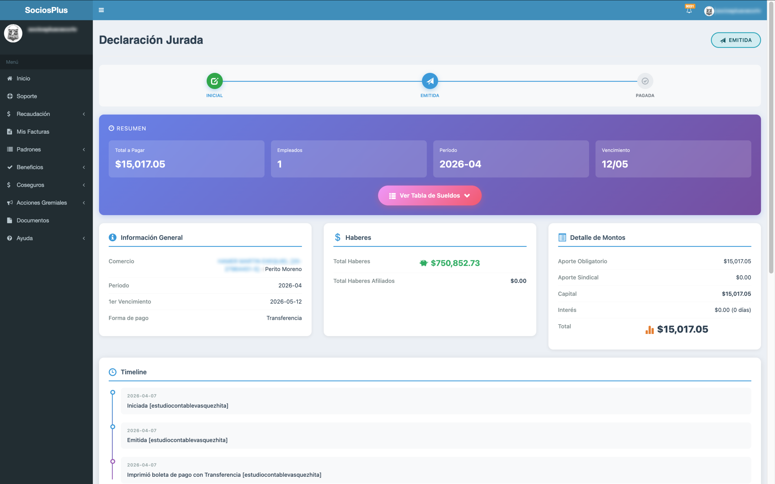 “Desde que conocí el sistema Socios Plus nos ha agilizado mucho, sobre todo, las liquidaciones de cuota sindical, ya que al estar en la nube, se puede acceder en cualquier momento y desde cualquier lugar, lo cual lo hace un sistema 100% recomendable para aquellos que tengan que asesorar a este tipo de entidades.”