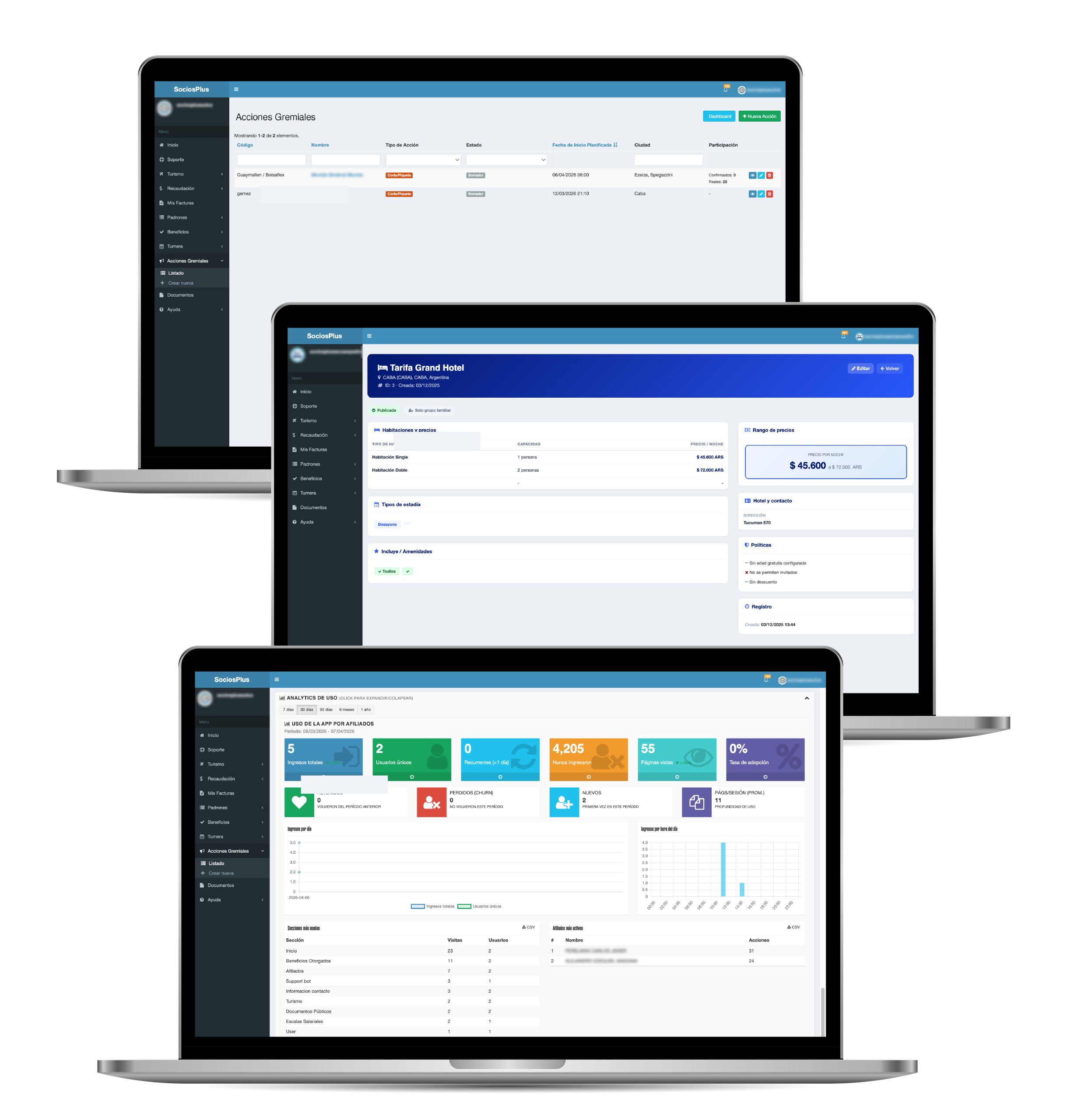 SociosPlus centraliza la gestión operativa de organizaciones con alta administración de miembros, beneficios, cobranzas y atención.